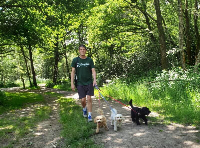 Woodland Tails is a family business based in the heart of Epsom Common. I have lived on the common for many years with my wife, two young daughters and our wonderful dogs. My love of animals is what drives my passion to provide high quality care for dogs big and small. Every dog deserves love, attention, companionship, heaps of exercise and stimulating play. If you need a trustworthy and reliable pet carer you can count on for those occasions when you need to leave your dog at home, please get in touch. I offer group and solo adventure walks as well as home visit services to dogs and other pets in Epsom and the surrounding areas. Most of my walks take place in the beautiful woodlands of Epsom and Ashtead Common, which offer endless exciting trails and are truly magical places for dogs to explore. I welcome all breeds of dog, no matter how big or small and will always look after them as though they are my own. I have up to date dog walking liability insurance and am fully DBS checked. I have also completed a CPD accredited activity in Dog First Aid Emergency Canine Care.